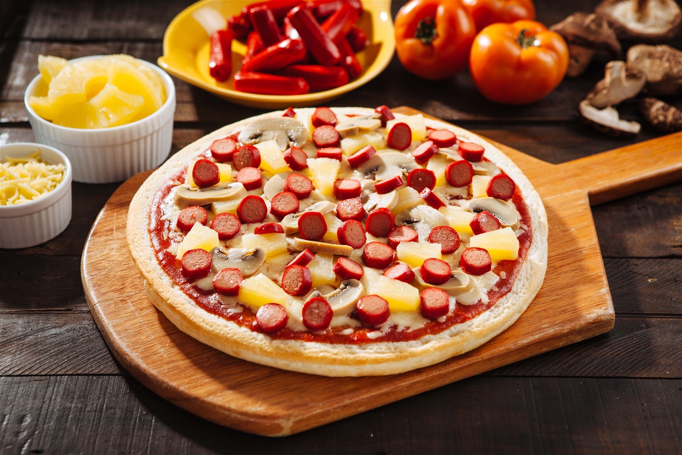 Món pizza xúc xích hấp dẫn sẽ là lựa sự chọn tuyệt vời cho cuối tuần của nhà bạn.