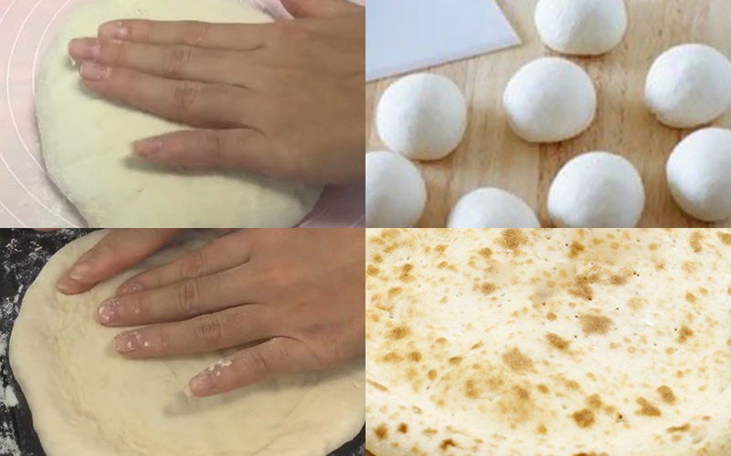Từ khối bột đã chia, bạn hãy vê tròn khối bột và dùng tay dàn bột thành hình tròn. Ở phần rìa của chiếc bánh các bạn hãy tạo hình cho vành bánh dày hơn một chút. Với bánh pizza được nướng bằng nồi chiên hơi nước các bạn có thể làm đế bánh dày hơn một chút khi nướng vẫn giòn mà không sợ bị cứng.