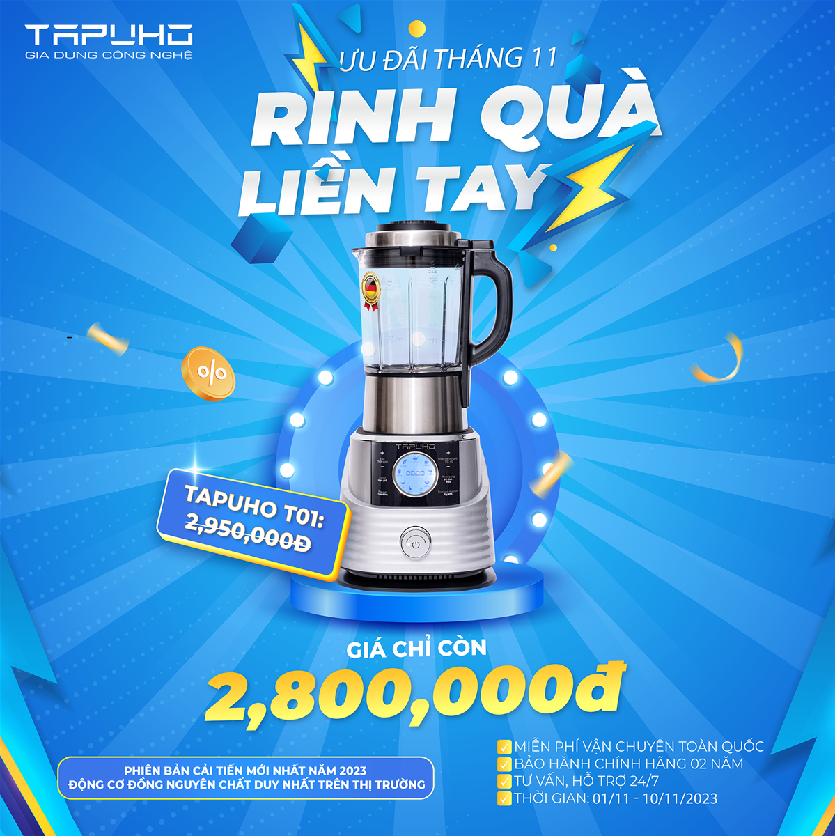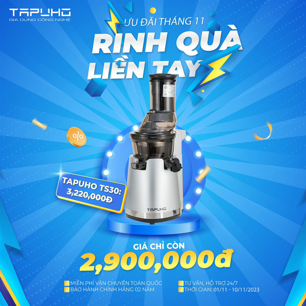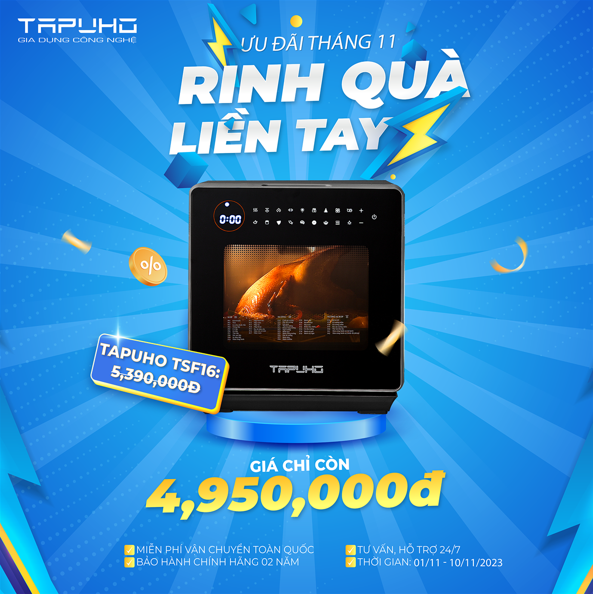 02/11/2023Chào đón tháng mới với nhiều chương trình ưu đãi cực khủng của TAPUHO diễn ra từ ngày 01/11 – 10/11/2023.
