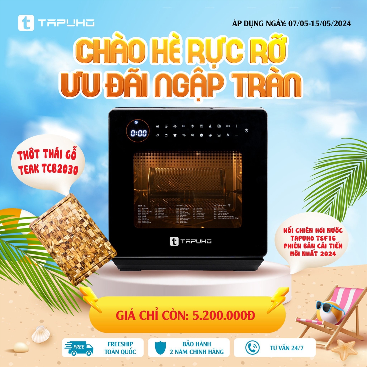 2. Combo nồi chiên hơi nước Tapuho TSF16 + Thớt Teak TCB2030