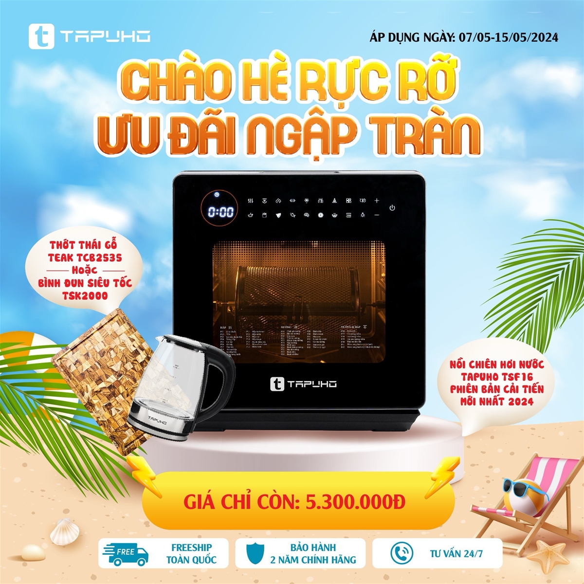 6. Combo nồi chiên hơi nước Tapuho + Bình siêu tốc TSK2000 hoặc Thớt Teak TBC2535