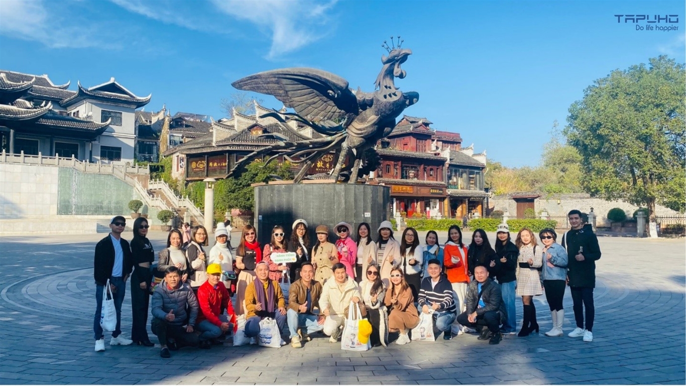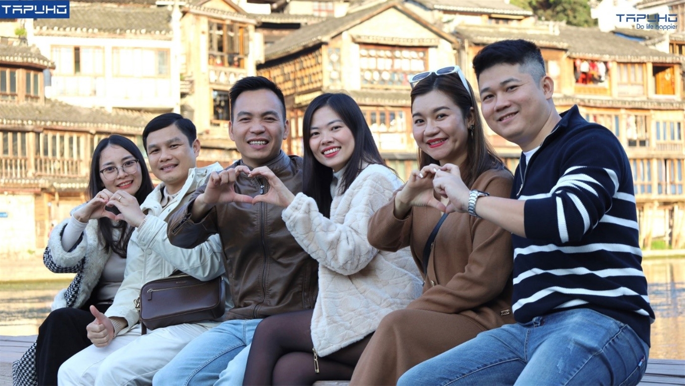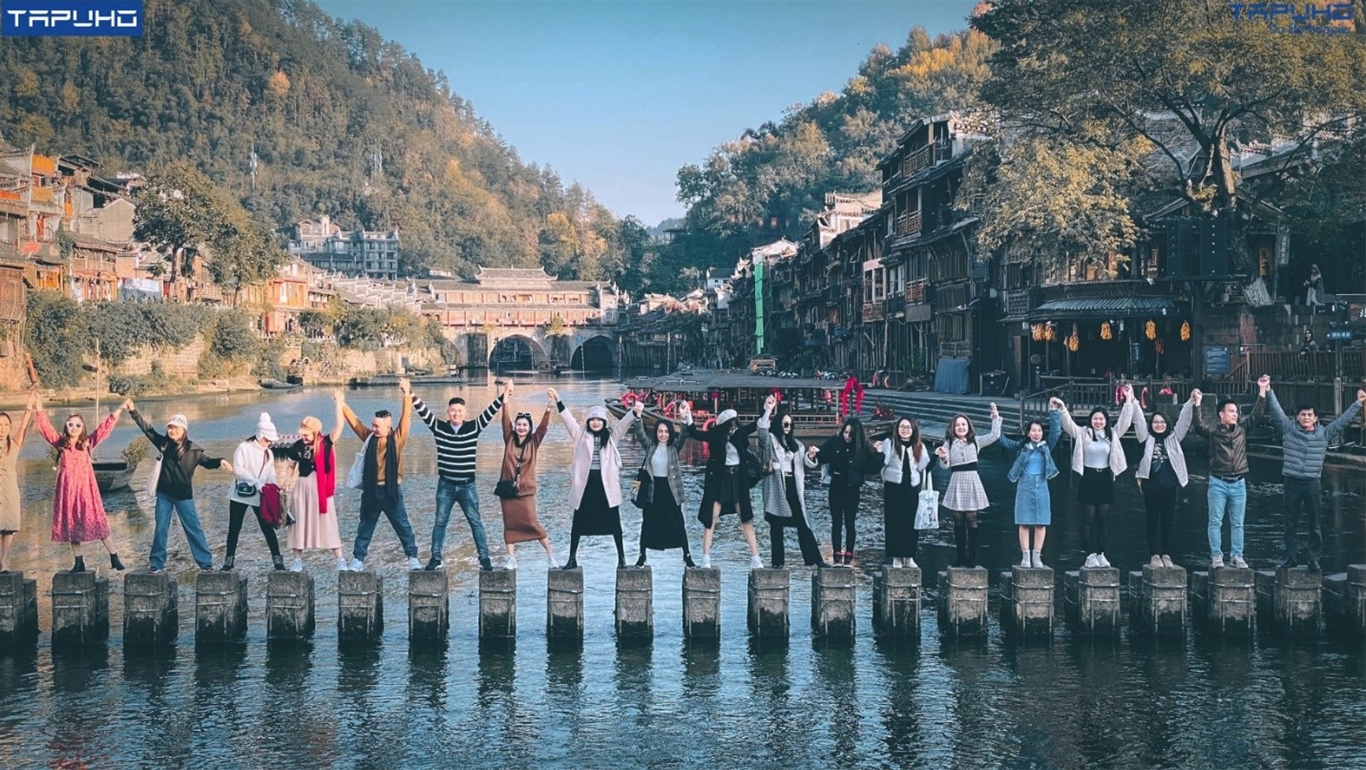 Mở đầu chuyến hành trình, TAPUHO Việt Nam cùng toàn thể Quý nhà phân phối, đại lý và cộng tác viên được du ngoạn đến Phượng Hoàng Cổ Trấn – thị trấn cổ tích ngoài đời thực, tất cả được thể hiện qua những nụ cười rạng rỡ trên gương mặt của các thành viên trong đoàn:
