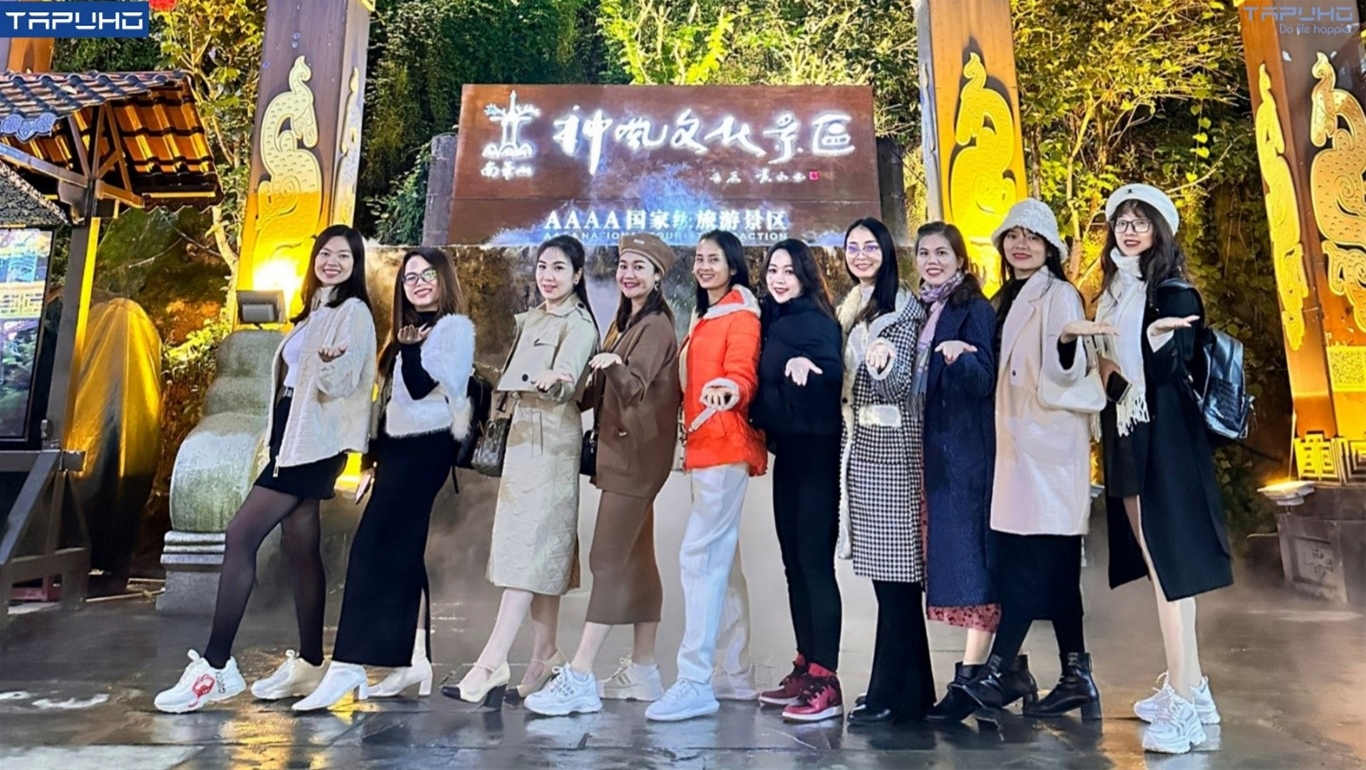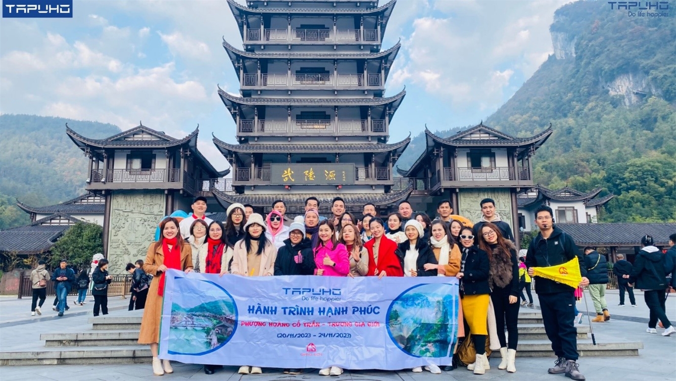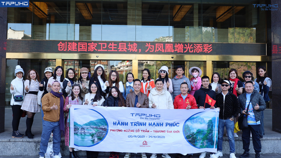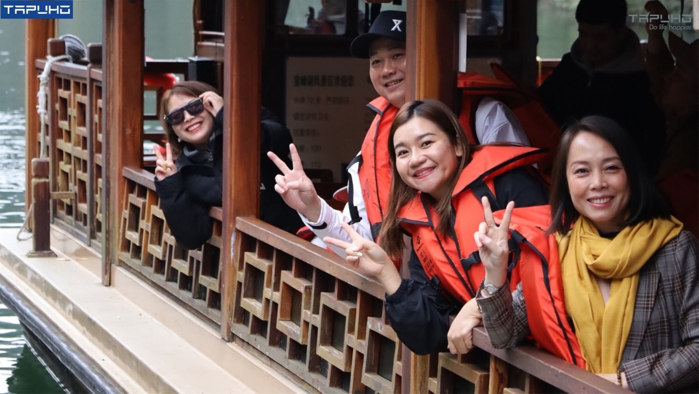 Mở đầu chuyến hành trình, TAPUHO Việt Nam cùng toàn thể Quý nhà phân phối, đại lý và cộng tác viên được du ngoạn đến Phượng Hoàng Cổ Trấn – thị trấn cổ tích ngoài đời thực, tất cả được thể hiện qua những nụ cười rạng rỡ trên gương mặt của các thành viên trong đoàn: