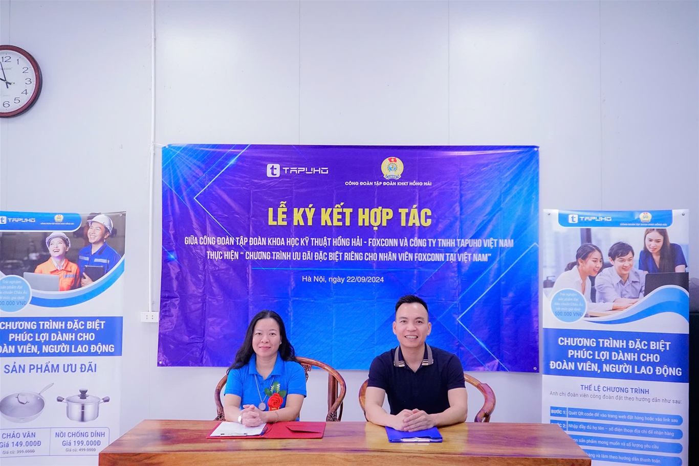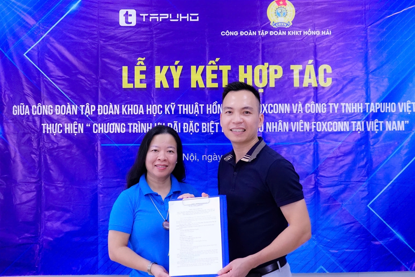 Ngày 22/9/2024, Công ty TNHH TAPUHO Việt Nam và Công đoàn Tập đoàn Khoa Học Kỹ Thuật Hồng Hải - FOXCONN chính thức ký kết thỏa thuận hợp tác chiến lược, khẳng định vị thế tiên phong trong lĩnh vực cung cấp các giải pháp gia dụng chất lượng cao. Thỏa thuận này đánh dấu một chương mới đầy tiềm năng khi TAPUHO cam kết triển khai Chương trình ưu đãi đặc biệt dành riêng cho hơn 200.000 nhân viên của FOXCONN tại Việt Nam, khẳng định sự tận tâm và tầm nhìn xa của TAPUHO.