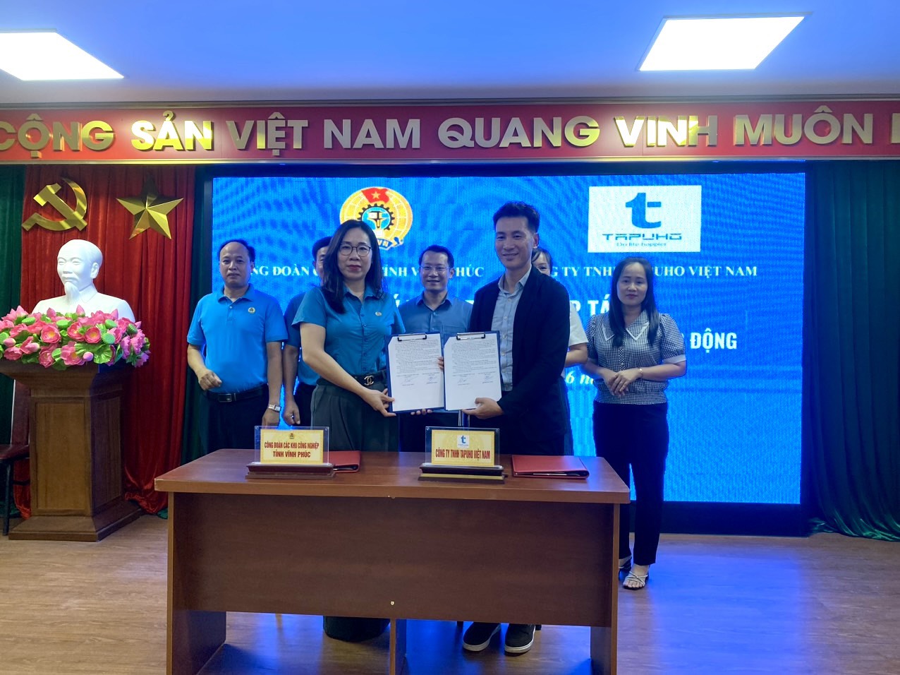 LỄ KÝ THỎA THUẬN HỢP TÁC GIỮA CÔNG ĐOÀN CÁC KHU CÔNG NGHIỆP VĨNH PHÚC VÀ CÔNG TY TNHH TAPUHO VIỆT NAM