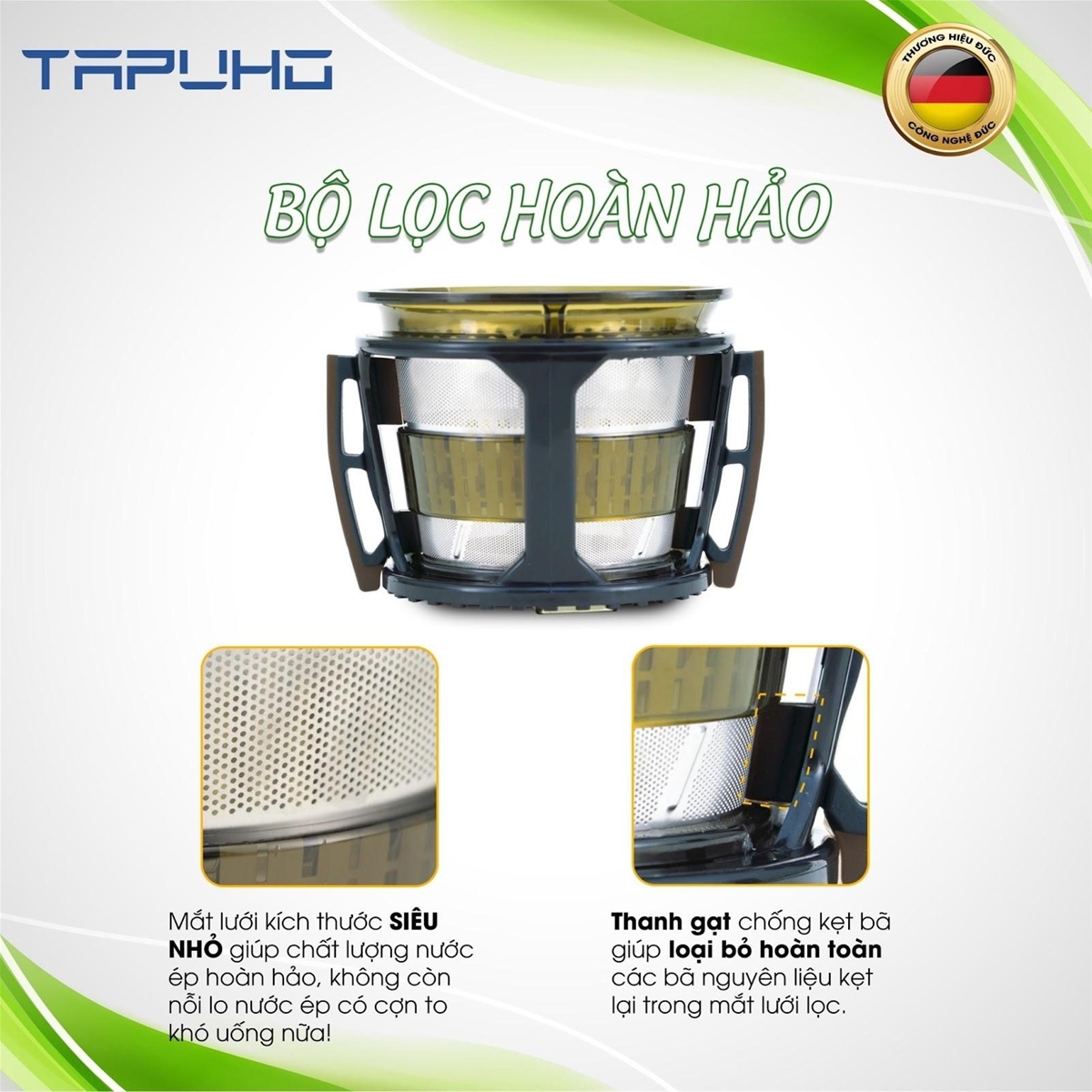 Máy ép chậm Tapuho TS30 là dòng máy ép chậm công nghệ hiện đại từ Đức. Với thiết kế trang nhã và sở hữu những tính năng vô cùng hiện đại, sản phẩm đã trở thành một người bạn không thể thiếu trong căn bếp của mỗi gia đình. Hãy cùng chúng tôi tìm hiểu máy ép chậm Tapuho có tốt không ngay trong bài viết dưới đây: