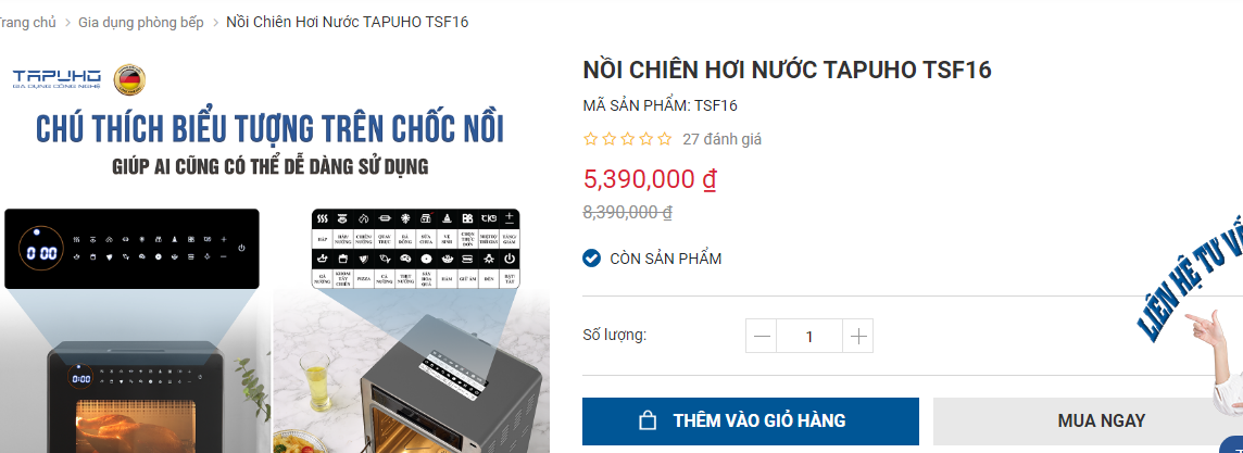 Dưới đây là các bước để đặt mua nồi chiên hơi nước Tapuho qua trang web: