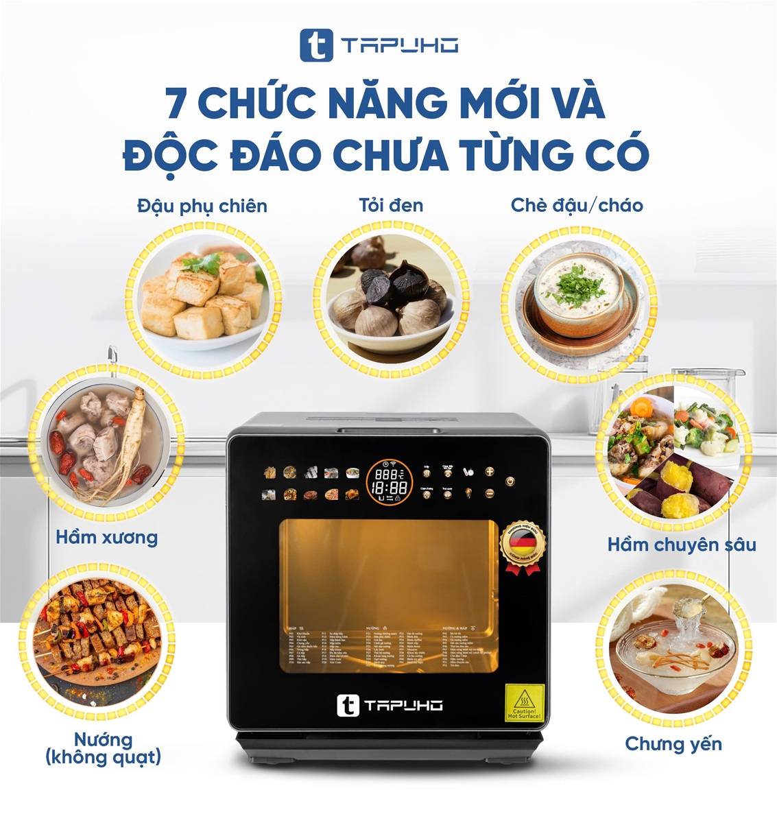 Ở phiên bản trước TAPUHO TSF16 đã làm bùng nổ thị trường nồi chiên hơi nước tại Việt Nam với chức năng HẦM độc nhất vô nhị, là chức năng có thể làm các món ăn cần ninh nhừ với cơ chế đặc biệt; đặc biệt có thể vừa làm các món nướng vừa làm các món hầm nhừ tại cùng một thời điểm.
