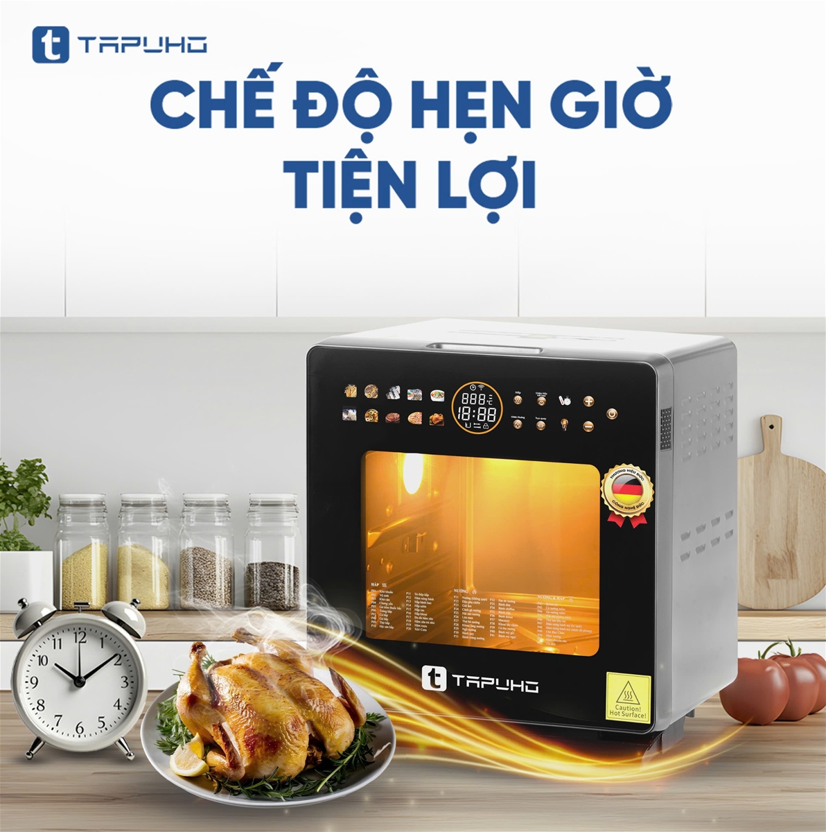 Thì ở TAPUHO TSF16 COLOR, TAPUHO lại cho ra chức năng “HẦM CHUYÊN SÂU” với cơ chế hoạt động độc đáo hơn, giúp người dùng có thể vừa làm các món hấp, vừa làm các món nướng, vừa làm các món hầm tại cùng một thời điểm!