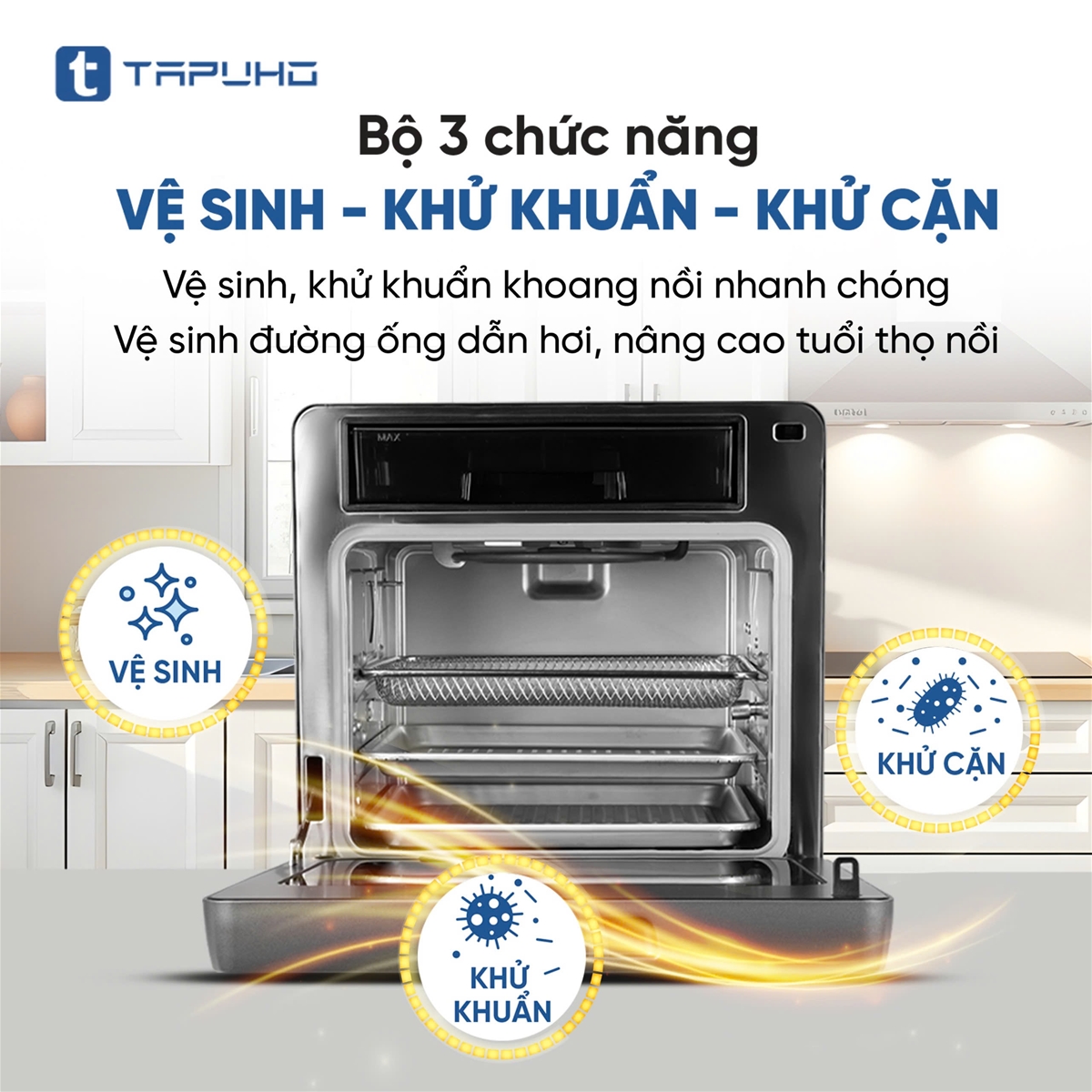 14. BỘ BA CHỨC NĂNG: KHỬ KHUẨN – VỆ SINH – KHỬ CẶN GIÚP VIỆC VỆ SINH DỄ DÀNG VÀ NÂNG CAO TUỔI THỌ CỦA NỒI