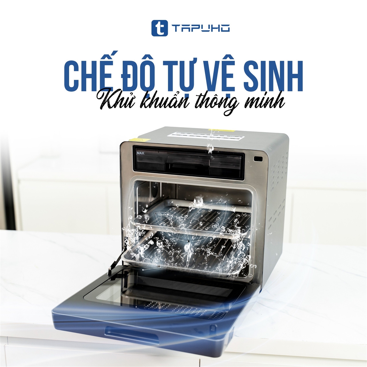Không ít người cảm thấy ngại khi dùng các loại nồi chiên không dầu vì làm sạch khó khăn. Thấu hiểu được nỗi lo này của khách hàng, Tapuho đã cài đặt chế độ vệ sinh và khử khuẩn tự động cho sản phẩm nồi chiên hơi nước. Dưới tác động của hơi nước nóng, các vết dầu mỡ bám trên thành nồi sẽ được làm mềm ra dễ dàng lau sạch.