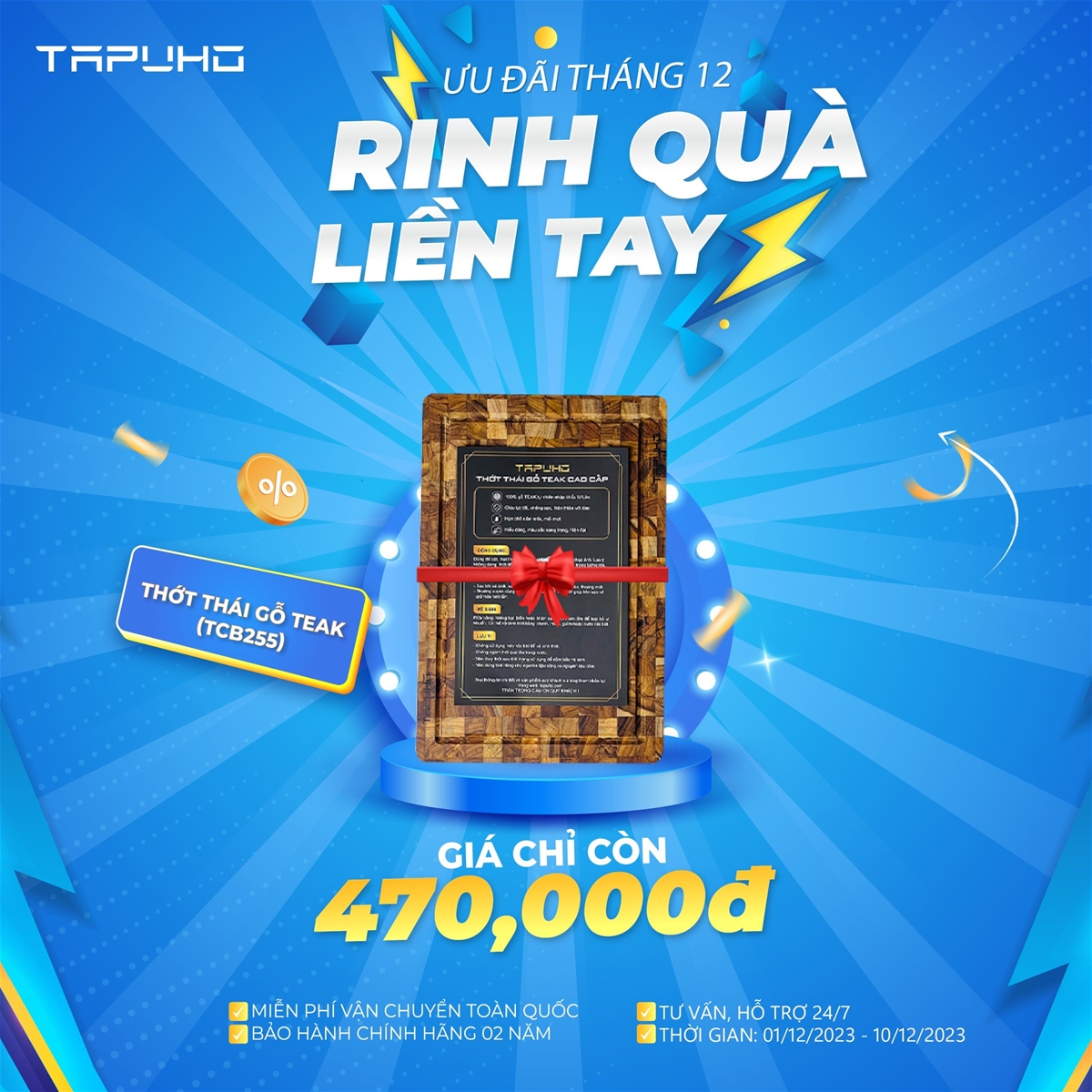 01/12/2023Cùng Tapuho chào tháng 12 với chương trình sale siêu to, giảm giá cực sốc từ 01/12/2023 – 10/12/2023. Chương trình được áp dụng trên toàn hệ thống đại lý Tapuho và tất cả các hình thức mua sắm online.